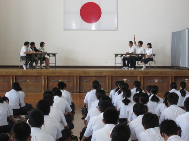 水の国高校生フォーラム宣言校の取り組みとして、三部会(生徒会、農業クラブ、家庭クラブ)で考えた原案をもとに、各クラスで話し合いが行われました。