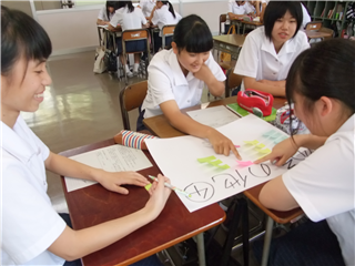 三部会(生徒会・農業クラブ・家庭クラブ)で、「水の宣言校」としての宣言文の原案を考えました。