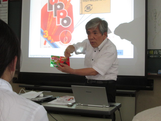 耳慣れない「知的財産教育」という言葉。しかし、お話を伺うにつれ、日頃の授業やプロジェクト活動でやっている発想・創造性の育成に特に焦点を当て、激動する社会の変化に対応できる力を養っていこうとする教育活動であることが理解できました。篭原先生は、これまで実践されてきた教材を惜しげもなく提供してくださいました。講演終了後、自分の科目で授業を展開するなら・・・と、色々な想像を巡らせ、職員同士で話しをしていた所です。