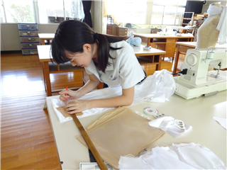 現在、11月にある文化祭「南稜祭」に向け、ドレスを製作中。