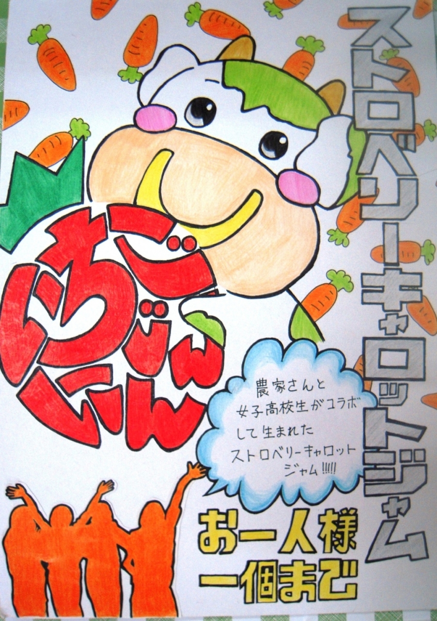 食品科学科3年 岩本さん、高波さん他4名「We love キャロット(JKC48)」~規格外ニンジンの変身物語~