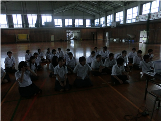 本日①時間目、3学年は進路に関する学習会を合同で行いました。
