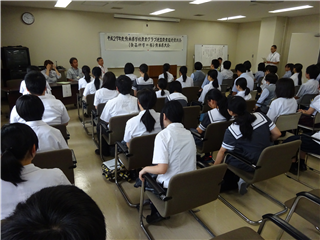 本日⑤時間目、学科別「先達に学ぶ」進路講話が行われました。