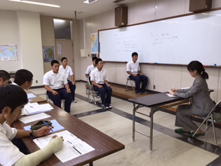 本日、午後から3学年ではマナー研修~面接の受け方~が行われました。