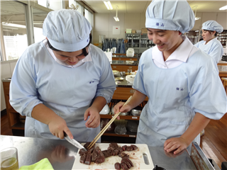 本日、③④限目、3年生活経営科「郷土料理」にて、鹿肉カレーを作りました。