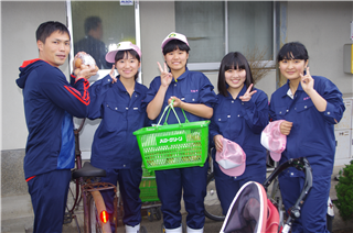 こちらは1年 生活経営科の生徒です。この日が初めての卵売りでした。