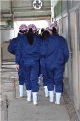 鶏と初めまして 投稿日時 : 2015/04/15 投稿者5 15日(水)1・2時間目に生活経営科1年生の農業と環境(飼育)の授業がありました。この授業で鶏のお世話や飼育の勉強を行います。今日は‘鶏を抱くことができるようになる’ことが目標とされていたようでした。 キャーキャーという悲鳴が鶏舎に響き渡っていました。その中でも、動物が好きな子たちは、サッと抱くことができていました。無事に全員が目標をクリアしました。満足そうな後ろ姿でした。5月にはヒヨコを迎えます。その時が待ち遠しいですね。