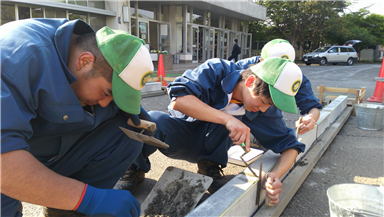 夏休み、環境工学科2年生が8日間の研修を受講し、最後まで頑張った8名の生徒が、刈払機取扱者作業者教育、伐木等(大径木等)、普通救命講習の3つの資格を取得した。