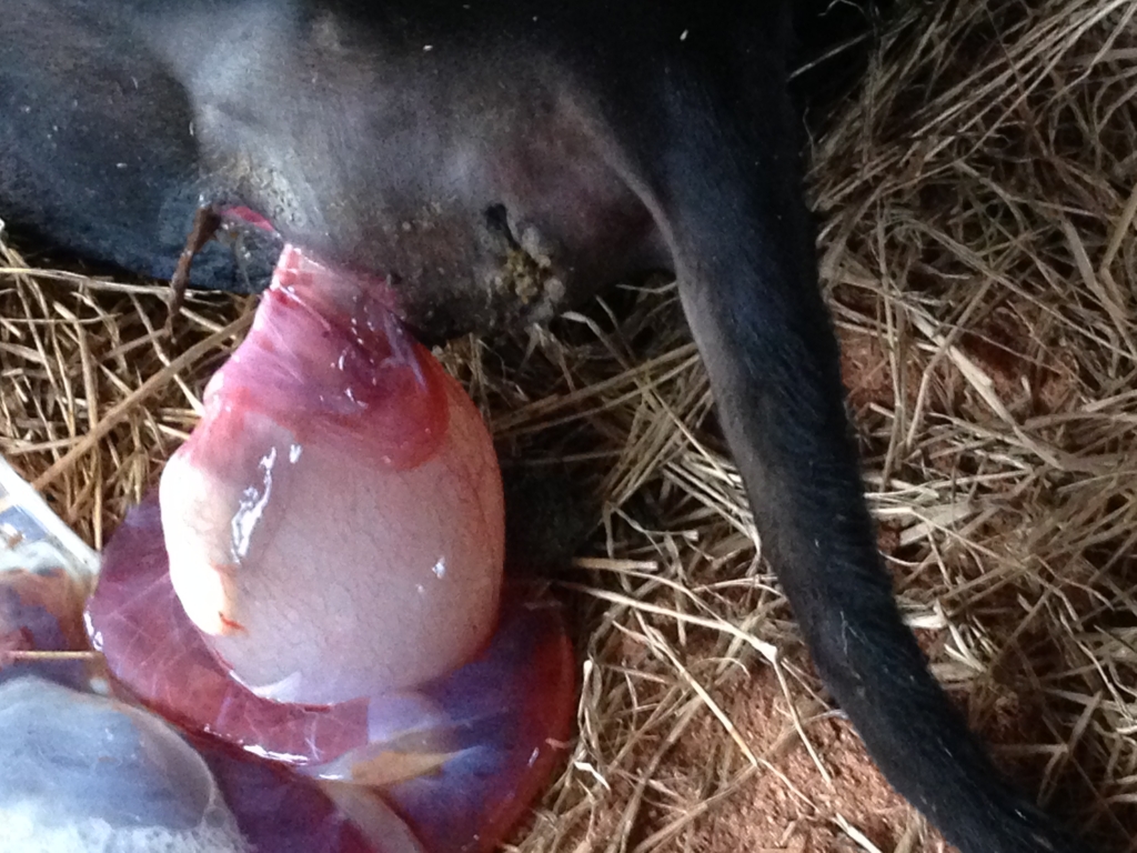 そこで異変を発見!!子牛の足が片方しか出てきていません…。