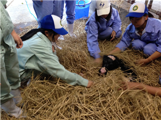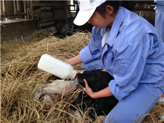 ④ 母牛の頑張りと、現在農場研修に入っている生徒の力によって、無事に元気な雌
