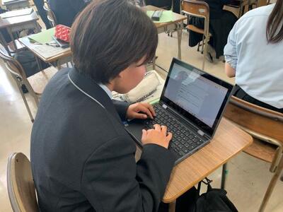 2年生に上がり週2時間「農業と情報」の授業を本校のパソコン室を利用して行っています1時間目から集中して授業に取り組んでいました