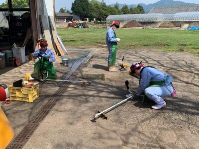 いよいよ今年も命の教育が始まりました。3年生は、作物、野菜、果樹、小動物、畜産と専攻ごとに分かれて実習を行います。圃場回りの草刈りも行うのですが、みんな資格を取得しています。まさに実学ですね。
