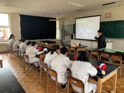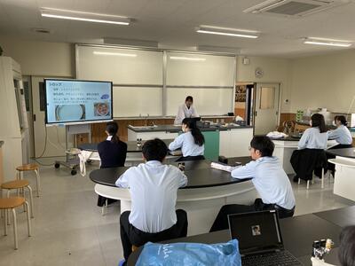 いよいよ1年生の授業が始まりました。今日は、実習服の確認やどのような実習が行われるかの説明が行われました。ワークシートに今日の授業の気づきなどを書いてもらいますが、たくさん書いていたようです。