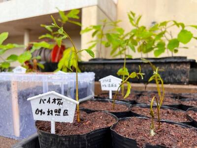 環境コース林業専攻の生徒たちは、クヌギのドングリを集めています。このドングリを地元の子供たちと共に発芽させて育てているのです。