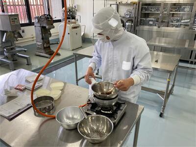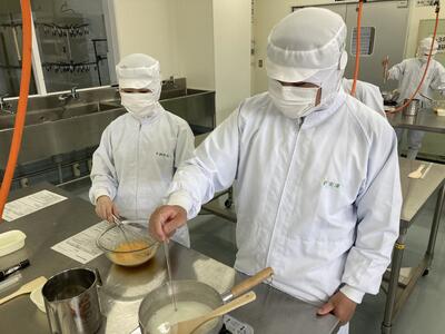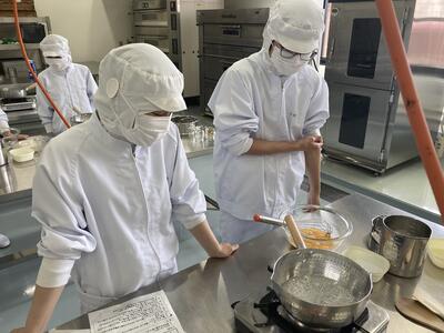 5,6限目は食品製造実習の授業においてプリンを製造しました新年度初めての持ち帰り実習でしたが、協力して時間内に終えることができました