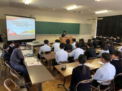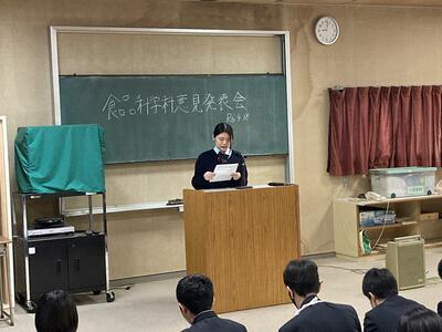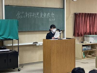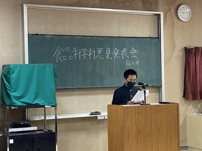 学科内の農業クラブ意見発表大会を行いました日頃の生活で感じたこと、人吉球磨地域の現状や食文化のこと、豪雨災害のこと、2、3年生は課題研究での学びや外部との商品開発を通して学んだことなどそれぞれが堂々と発表してくれました