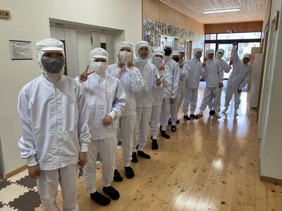総合農業科の生徒が食品製造の授業を学んでいきます本日は学期、最初の実習服試着をおこないました