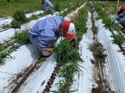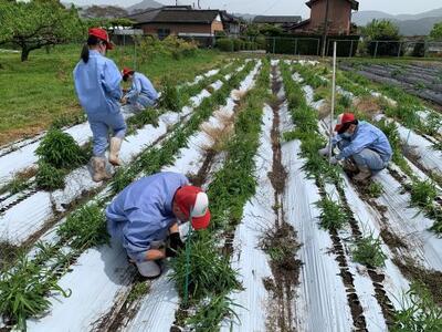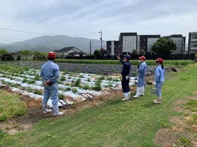 畑に行き皆で協力して、丁寧に定植しています