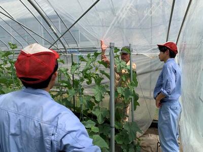 総合農業科の植物コースでは、様々な栽培を行っています。このハウスは、メロンの肥後グリーンという品種です。今年は、雨が多いですが、晴れるとハウス内は一気に気温が高くなります。