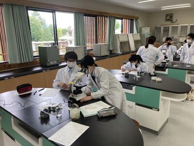 南稜高校には総合選択の授業があり、全ての学科が他学科の授業や学校設定教科・科目を受けることができます。生活経営科の生徒が総合農業科の林業の勉強をしています。幅広く学ぶことができるのですね!!!