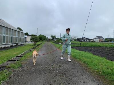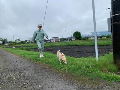 これは生活経営科の小動物専攻の生徒たちの休日当番実習の様子です。南稜高校では、ヤギやポニー、犬などを飼育しています。二匹の犬(ユズ コムギ)は散歩が大好きなので、当番実習でも散歩をします。実習をしながら癒されていました♪