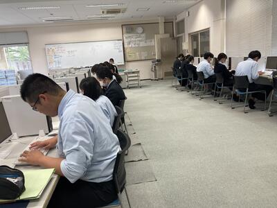 3年生は、早くも進路モードです。3年生の環境コース土木専攻の中には、公務員試験や土木施工管理の資格を取るために、放課後自主学習する姿が見られます。