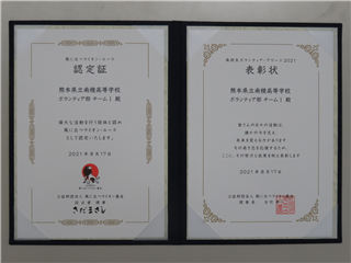 昨年度10月19日(月)以降3月までの校内売店設置の募金ケースによる募金(昨年度分)6,289円、人吉市在住の方お二人からお預かりした募金16,122円、簡易書留にて届いた募金(千葉県佐倉市、愛知県春日井市、福岡県筑紫野市、宮崎県小林市)55,000円の、合計77,411円を手渡しし、これまで手渡しした募金の累計金額は81,311円になりました。