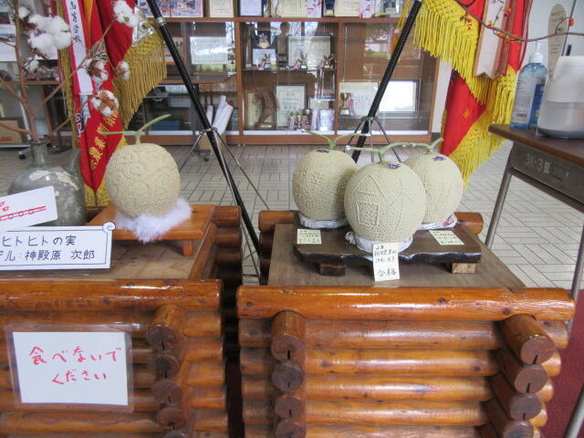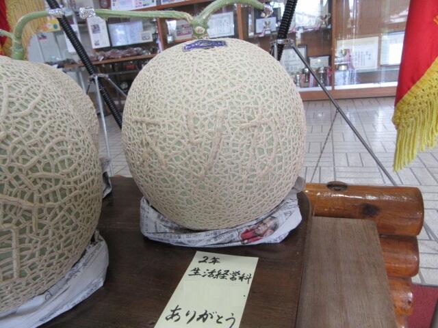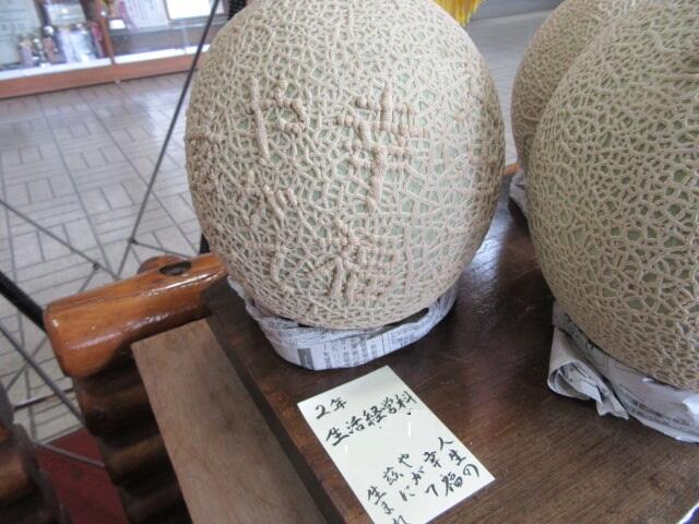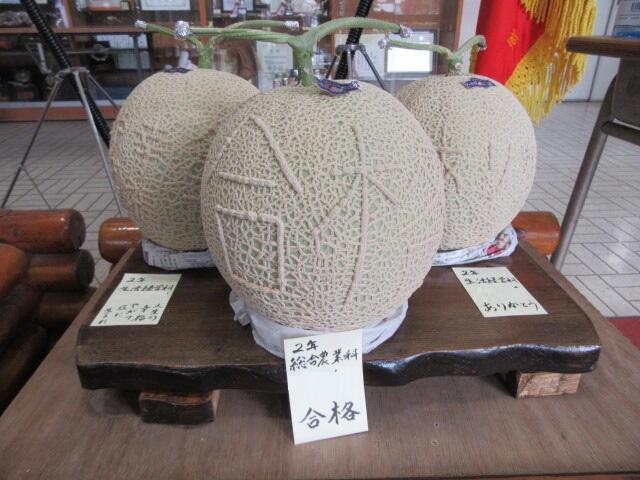 今、正面玄関には生徒が育てたメロンも展示してあります。よく見ると模様や文字が・・・!