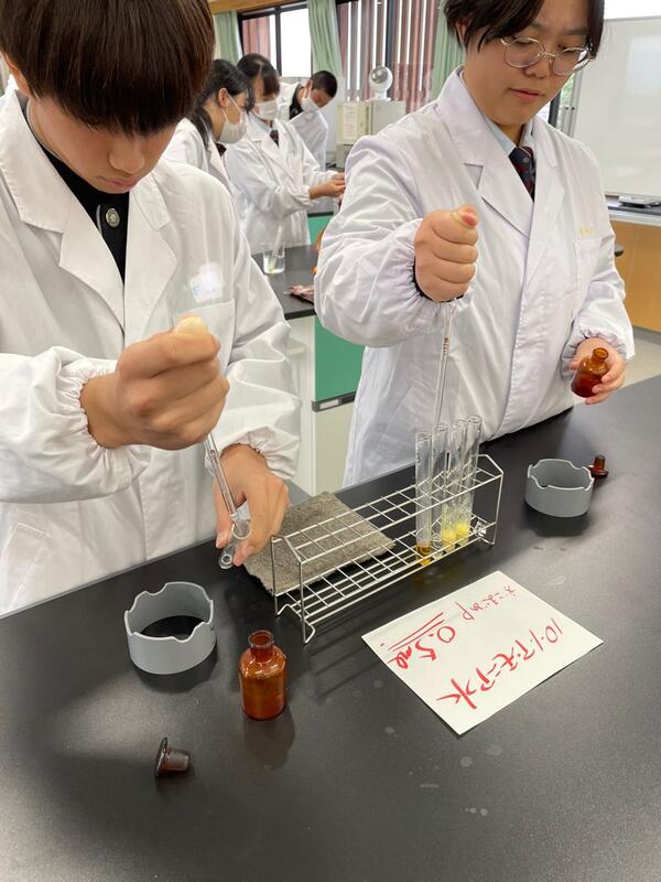 南稜祭まで肉加工実習を頑張ってきた2年生です久しぶりに食品化学の実験を行いました