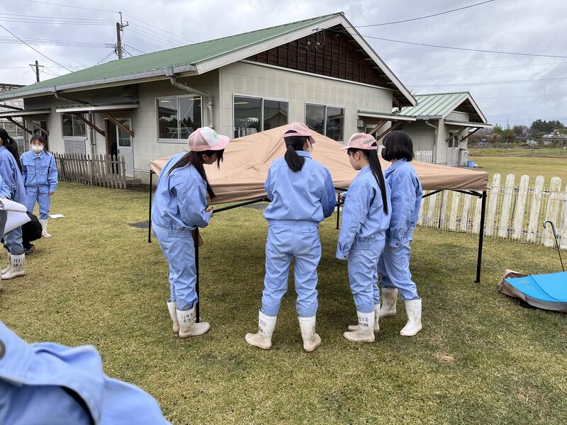 この動物ふれあい活動、1年生活経営科、1年総合農業科、2年総合農業科、3年総合選択と様々なクラスで実施していますが、この2年生活経営科が家庭科の専門科目である「保育基礎」の学びを生かしながら全体の計画やクイズなどの準備に取り組んできたクラスです。しかし、これまでの動物ふれあい活動を振り返ると、いつも雨・・・。ピンチはチャンス。困難な状況だからこそ、工夫をとおした成長ができるというものです。