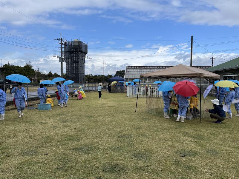 本校の教育活動は卒業生、小学生、農家の方々と様々な人たちから支えられています。本当にありがとうございます。おかげで無事、一武小学校の動物ふれあい活動を終えることができました。小学生の皆さん、雨の中ありがとうございました。