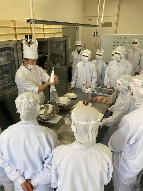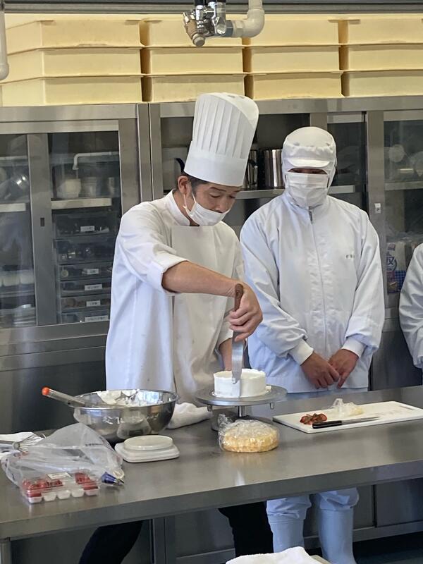 特別にウエディングケーキのデコレーションを見せていただきました。生徒からは大きな歓声が上がっていました