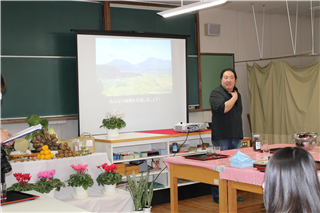 今回の開放講座は生活経営科の生徒が企画、準備、運営のすべてを行いました。講座の一つのコンセプトとしていたことが「素敵な時間の共有」でした。完璧な寄せ植え、クリスマスリースを作ることが目的でなく、個性あふれる作品と和やかな時間、それをどう演出するかを課題として、思考、計画し実行しました。コーヒーの香りとクリスマス音楽のなかで、素敵な時間を演出・共有できました。