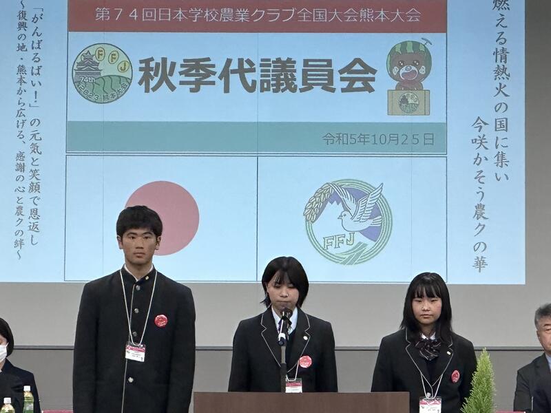本日10月より第74回日本学校農業クラブ全国大会令和5年度(2023年)熊本大会がおこなわれています