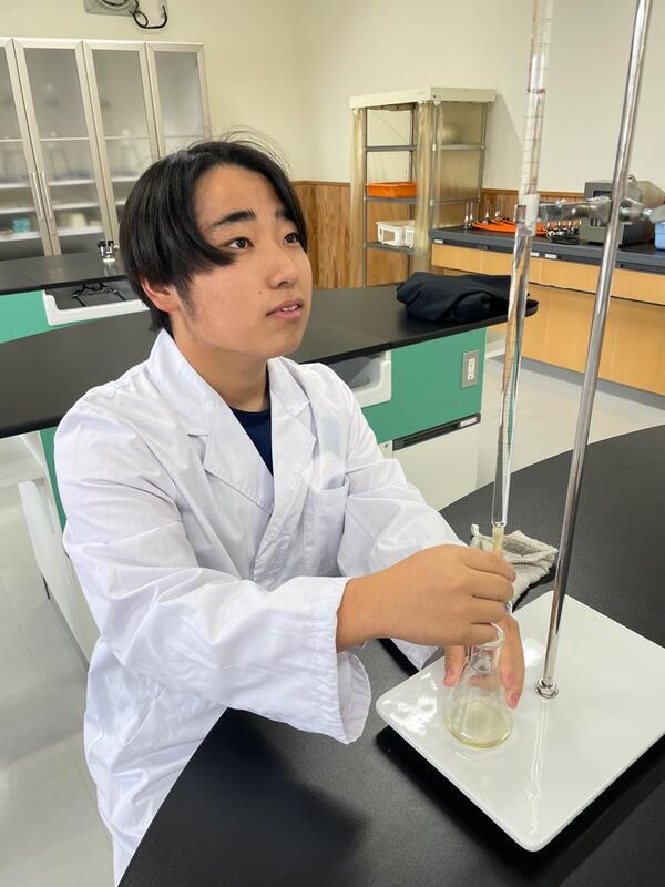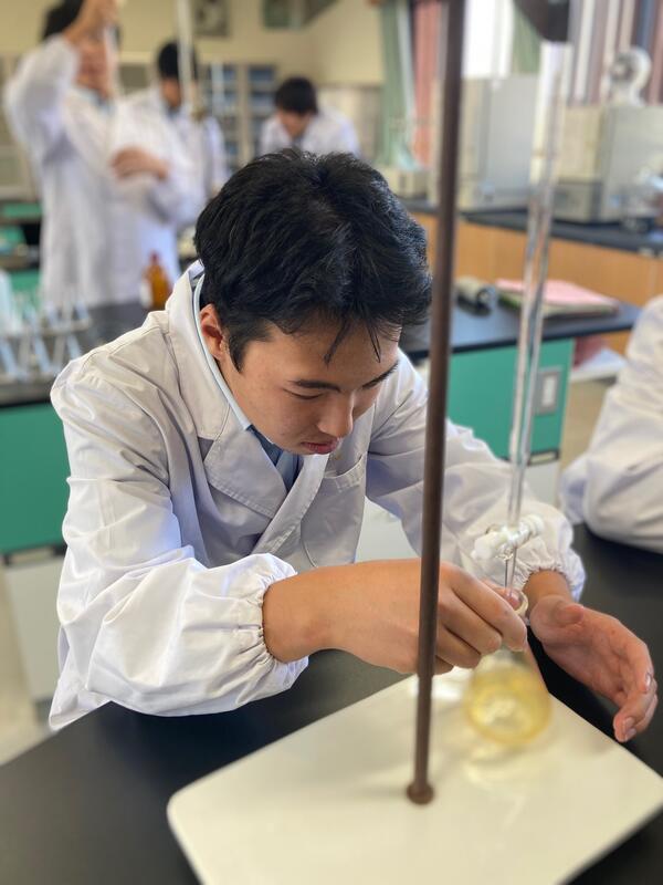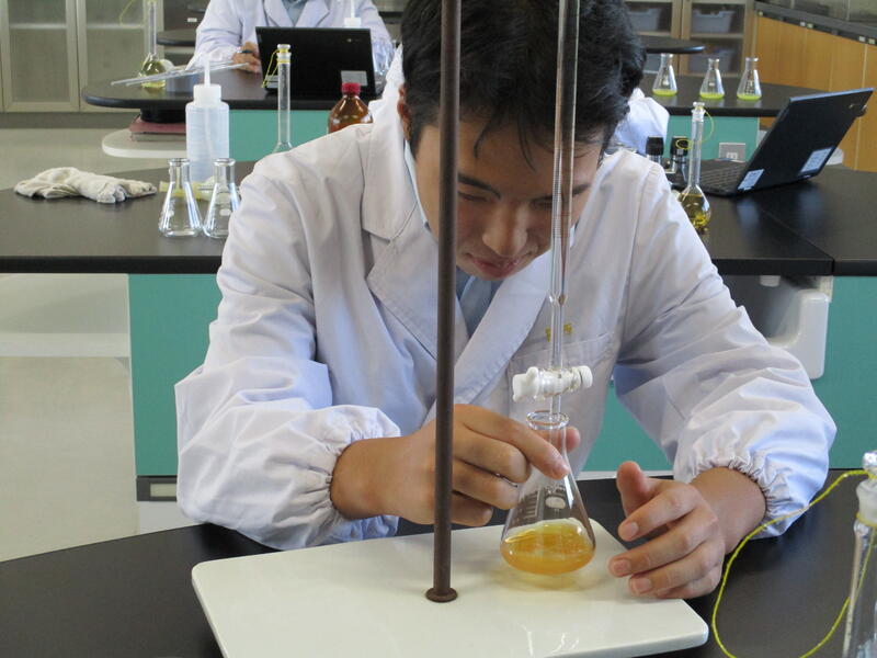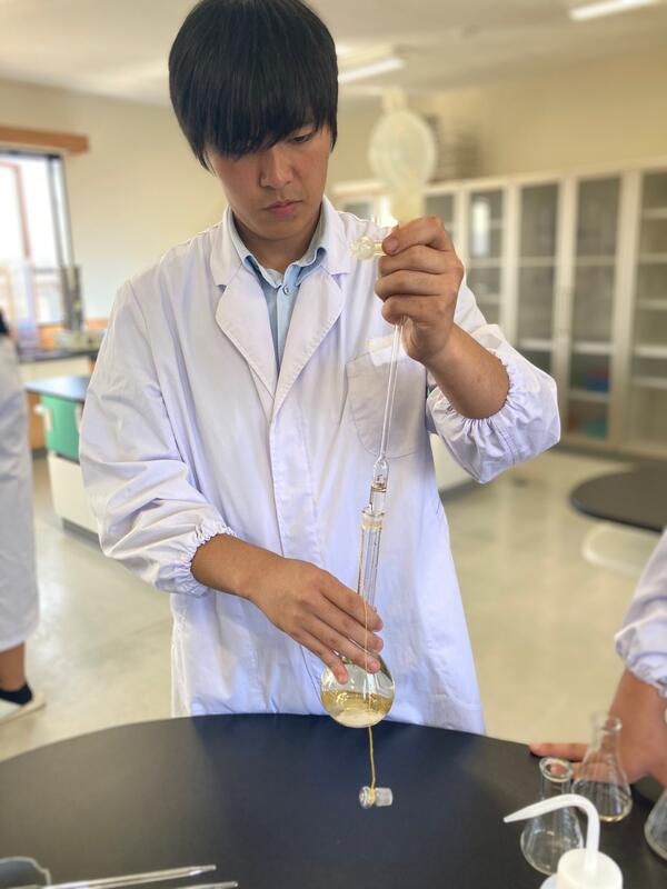 現在醸造の集大成となるプラント焼酎の製造を行っている3年食品科学科の前半組が8日(水)にもろみの分析を行い、10日(金)の午後からプラント焼酎の常圧蒸留を行いました