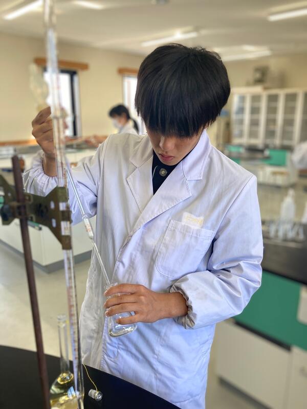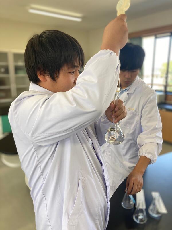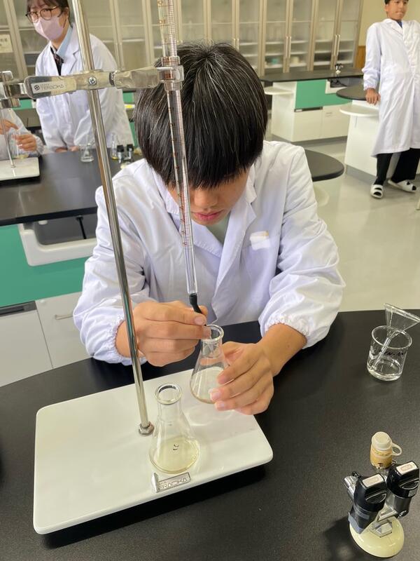 本日5、6限目は「しょうゆ(薄口・濃口)の塩分濃度の定量」を行いました失敗もありましたが、いつも以上に落ち着いて真剣に実験ができていました