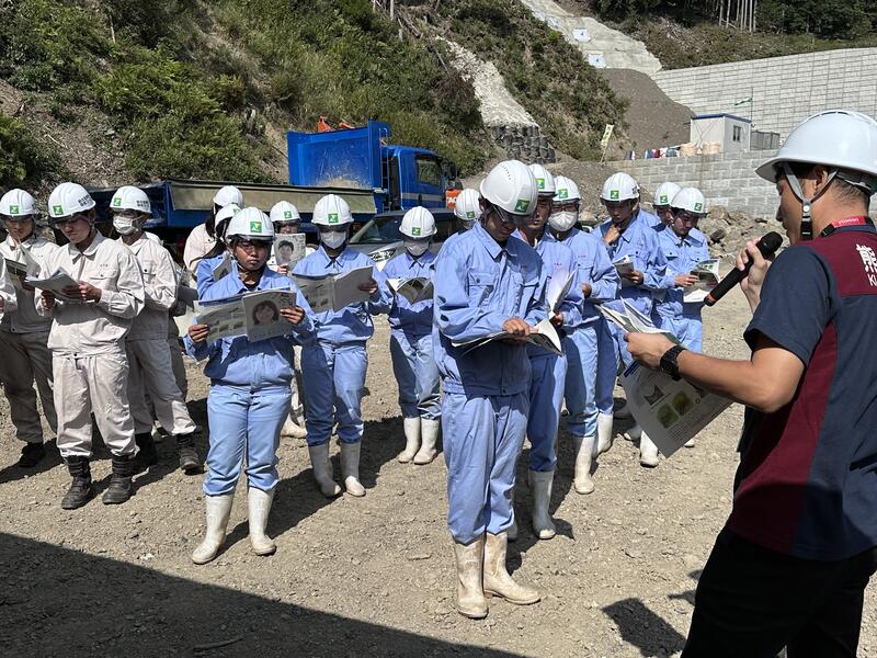 写真は、現場代理人の方から工事の概要について説明を受けているところです