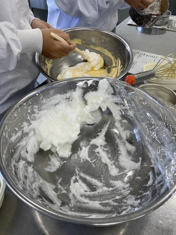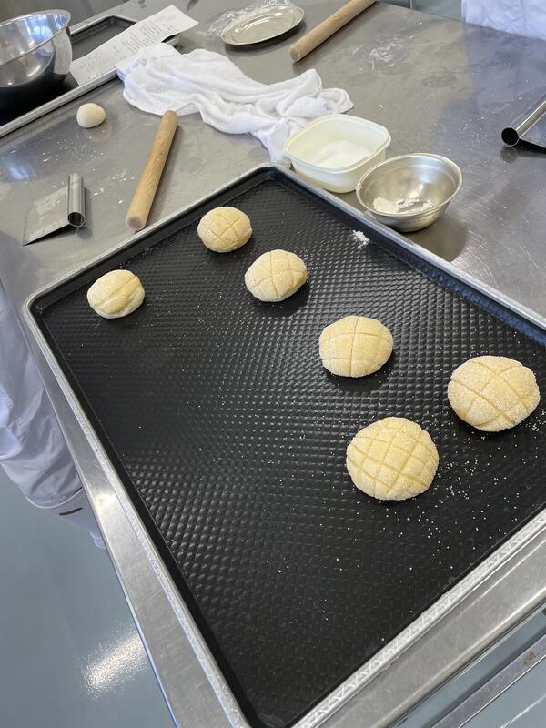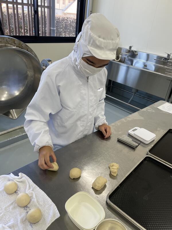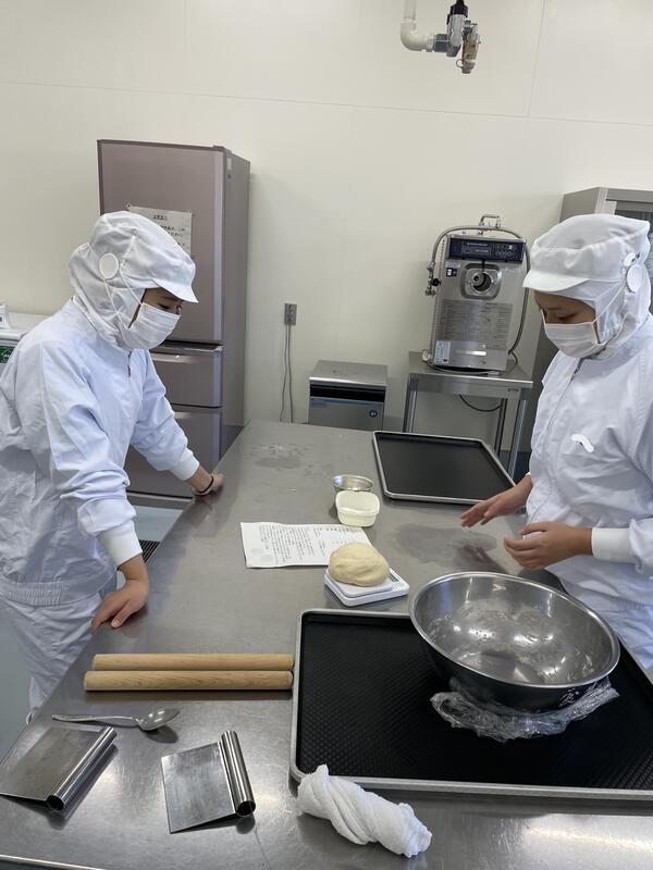 絞りだしクッキー、パウンドケーキは1年生が製造しましたまた、当日パンの仕込み製造を1年生で行います。焼きたての丸パンもお楽しみに