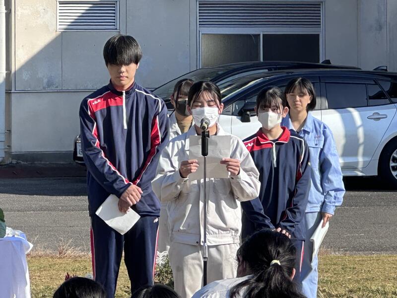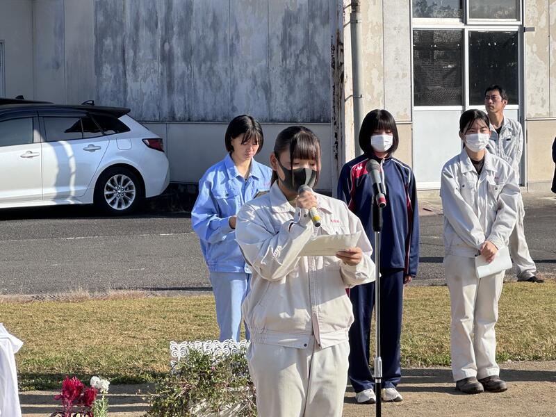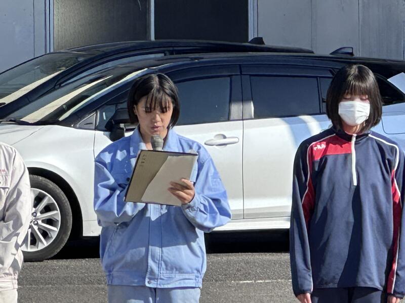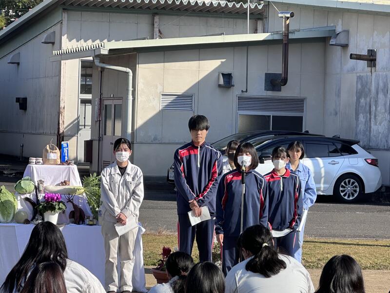秋季代議員会の生徒実施委員長の3年総合農業科の杉本さんが挨拶を行い、他の実施委員の紹介が行われました