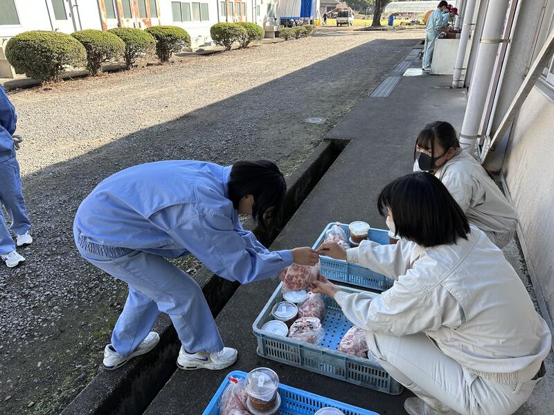 2年生は、今学期に入り製造したジュース類・ジャム類そして2年生の集大成でもある肉加工製品の製造実習、販売を行いました。