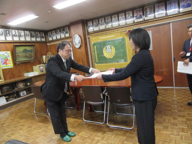 本日、熊本県教育委員会高校教育課課長より表彰状が手渡されました