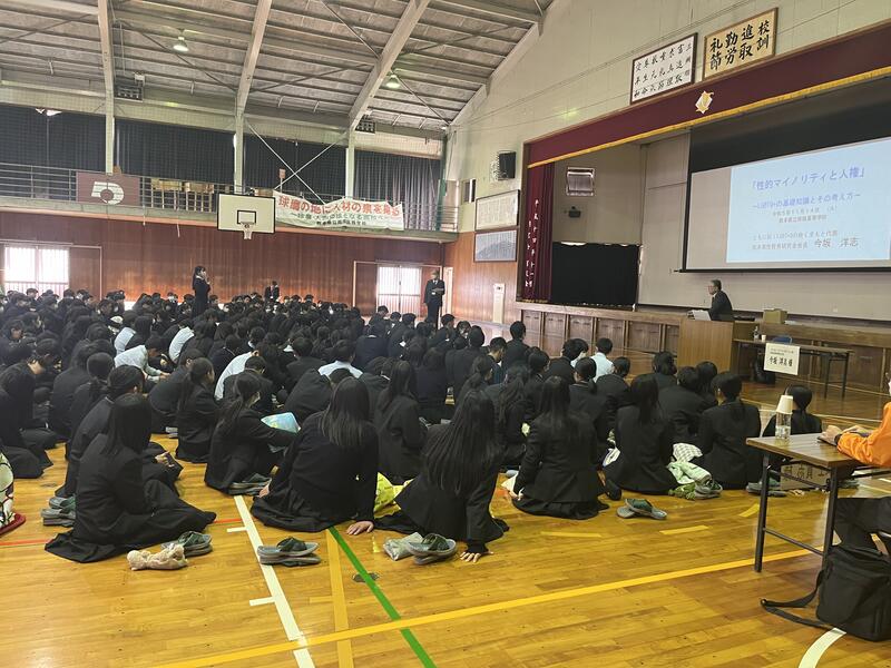 今年は人吉球磨地域の人権擁護委員であります池本一正様のご協力の下、LGBTQ+に関する啓発活動の第一人者でもあります今坂洋志様(ともに拓くLGBTQ+の会 くまもと 代表)に、「性的マイノリティーと人権 ~LGBTQ+の基礎知識とその考え方~」をテーマにご講演をいただきました。