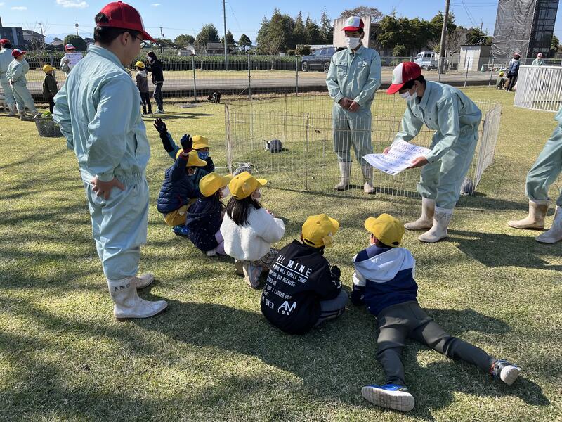 高校生のふれあい動物活動の目的は・小学生に楽しんでもらう。・動物の魅力や命の大切さを伝える。・様々な世代の方々との交流をとおして、コミュニケーション能力の育成を図る。の3つです。農業をとおして様々な世代の方々とコミュニケーションを深めることが学びとなります。今回は農業だけではなかったですが、気持ちを一つにして盛り上がることができました。