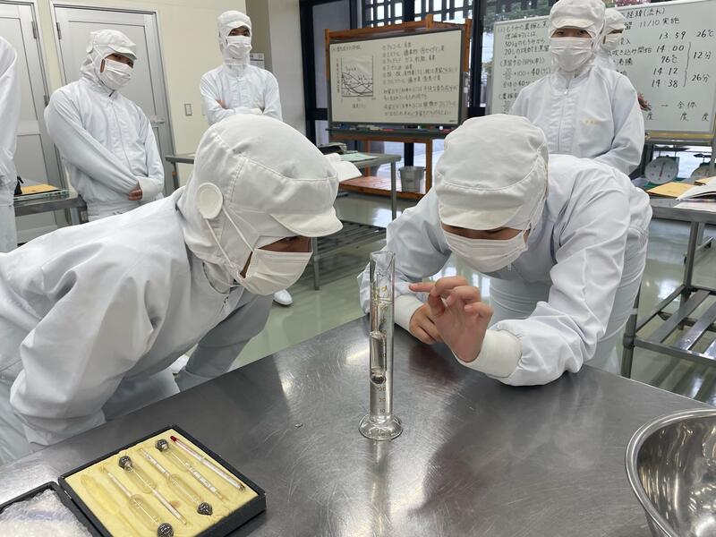 授業の様子をご覧ください。まずは、もろみの分析です!