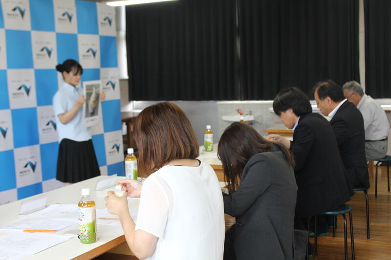 今年度は「ご当地ソフトクリーム」をテーマに、生徒が考案した55案の中から一次選考(書類選考)で9案に絞られ、8月4日(金)にプレゼンテーション審査会を本校で実施しました。プレゼンテーション審査会では、考案した生徒がソフトクリームの特徴をPRした後、審査員の方々に試食をしていただきました!!