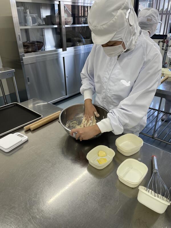 本日は、食品科学科でプロジェクト活動に取り組んでいる生徒たちバームクーヘンの試作を行いました家庭科・調理
