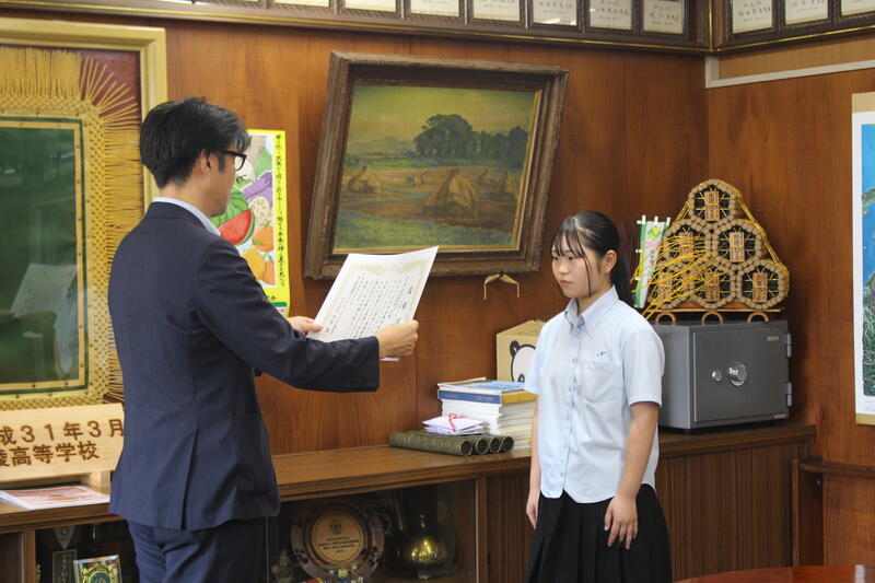 9月8日(金)には、本校校長室で表彰式が行われました。コラボソフトクリーム表彰に加え、PRポスター表彰もしていただきました。PRポスターについても依頼をいただいており、生徒が考案した背景やキャラクターなどが採用されました!!