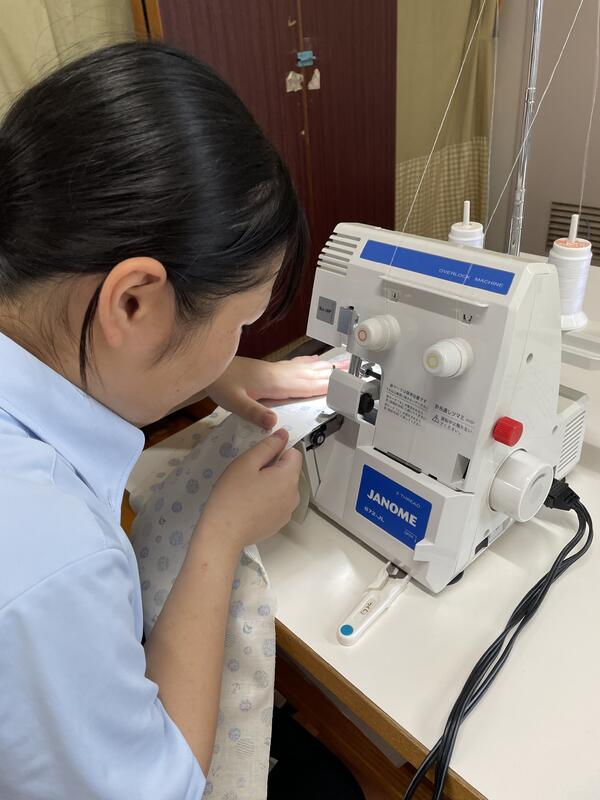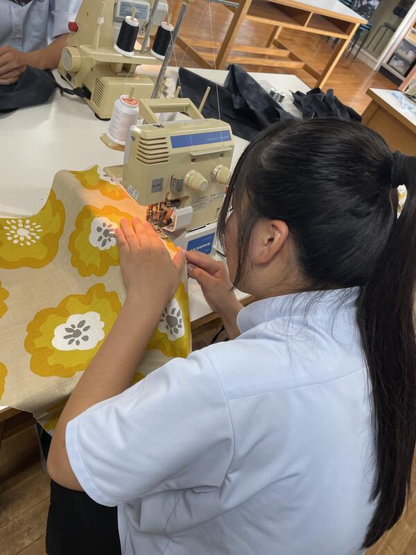 ハーフパンツを製作するにあたって、縫い代がほつれないよう、ロックミシンをかける作業を行いましたにっこり