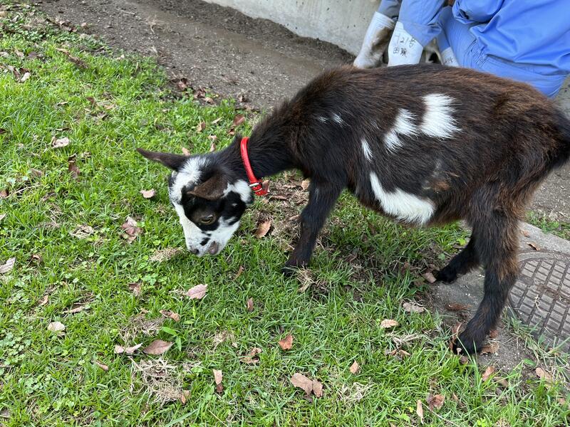 ふれあい動物で活躍してくれる子ヤギ。ヤギ班は5頭それぞれに首輪をつけました。かわいくなりました。