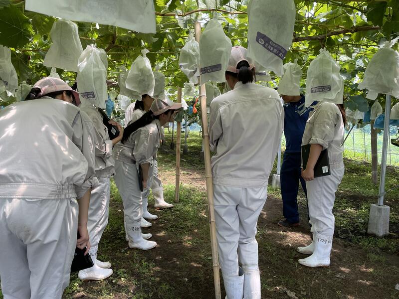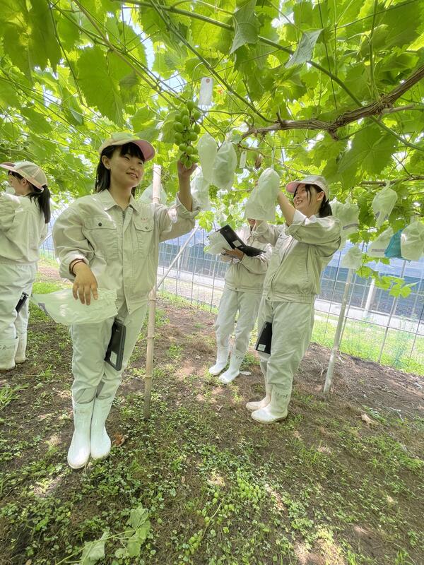 総合農業科植物コースでは、シャインマスカットの収穫始めました。